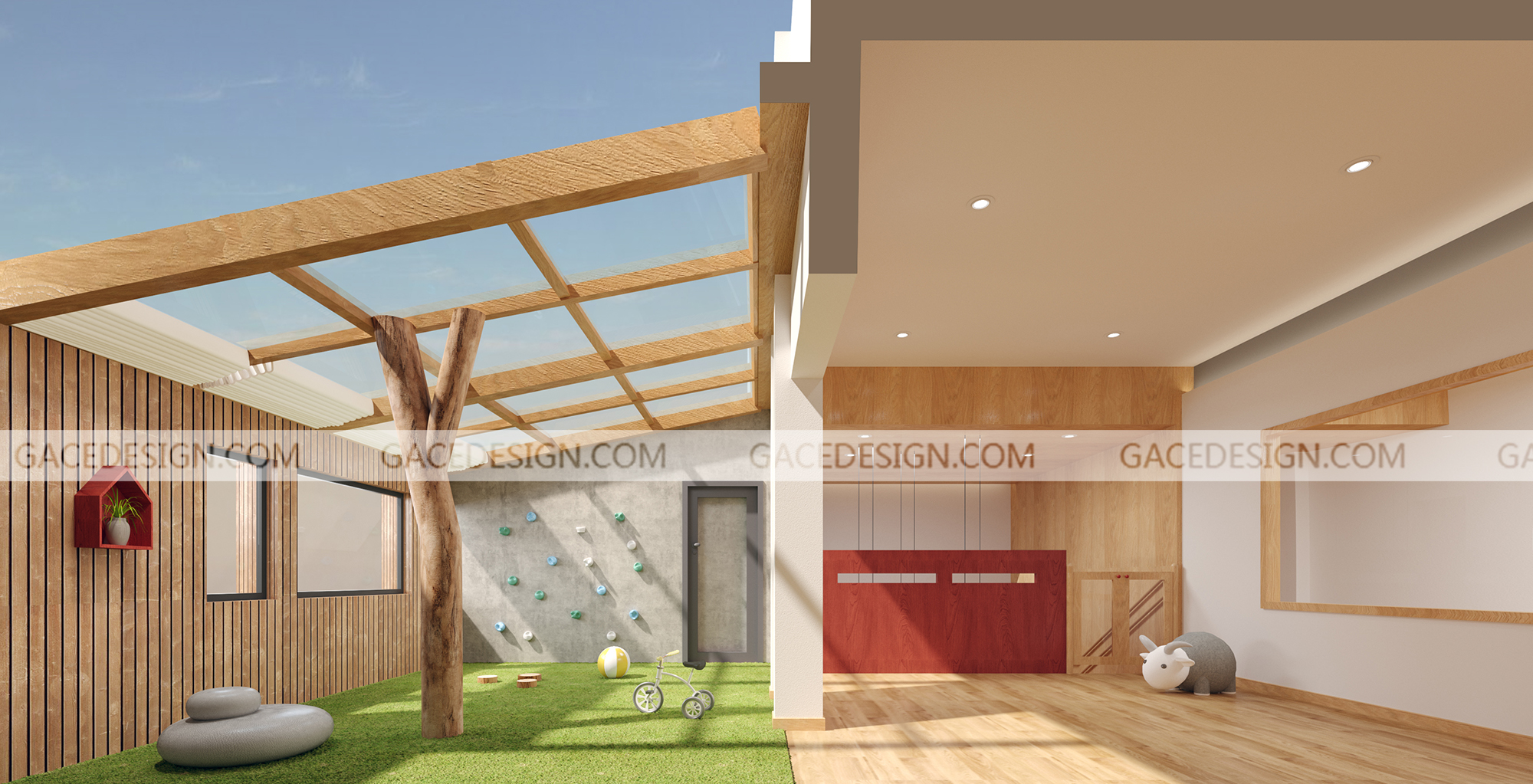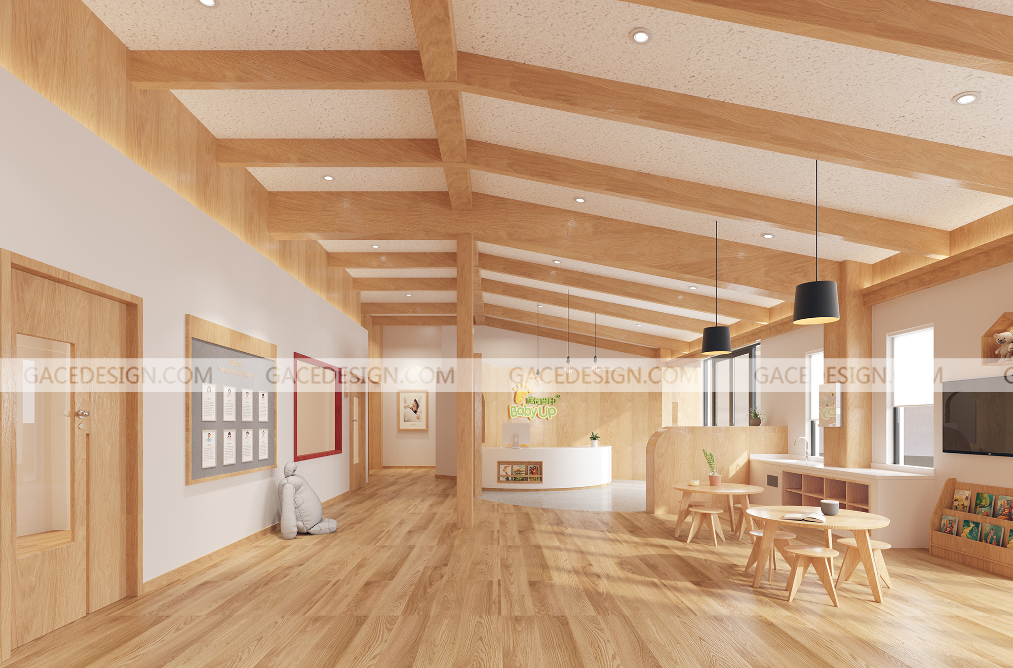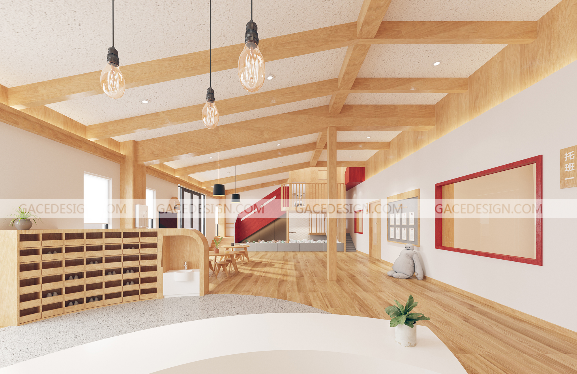設(shè)計思路:本次項目主要強調(diào)的是多層建筑穿透的院落空間,采用細膩自然材料打造的輕盈體量,在各層設(shè)置了一個中央部落,將孩子們齊聚一堂。大面積的木制飾面營造出溫暖的室內(nèi)氛圍,自然、溫暖的元素融合在一起形成了一個充滿活力與溫暖的室內(nèi)空間。我們將小陽臺納入室內(nèi)規(guī)劃出內(nèi)庭院,內(nèi)部的走廊和公共空間因為內(nèi)庭院的存在而變得光明。