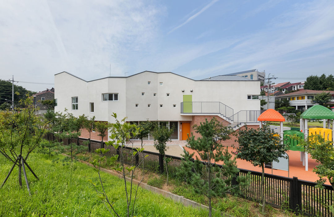 這是一家在韓國(guó)首爾的幼兒園,外觀上最明顯的標(biāo)志是不規(guī)則的屋頂,雖然還是用的青瓦,它的起伏和轉(zhuǎn)折并不連貫,倒像是將不同幢房子拼在一起了。每一個(gè)房間都只有一種顏色,但光線(xiàn)和轉(zhuǎn)折的墻面讓每個(gè)房間都非常獨(dú)特,越來(lái)越多的幼兒園融入了設(shè)計(jì)者對(duì)于早期教育的想法。有的放任玩耍,寓教于樂(lè),也有通過(guò)建筑設(shè)計(jì)來(lái)影響兒童的世界觀。