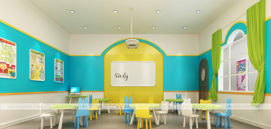 一:幼兒園教室的座椅和黑板上要進行契合實際的設計,黑板的高度既不能太高也不太低,如果黑板的高度太高的話,則學生在看黑板的時候需要仰起頭來看,這樣很容易造成疲勞,當然如果太低的話,則對于老師則便是一個不利之處,畢竟老師的身高是很高的,所以進行幼兒園教室設計的時候一定要適度而行。