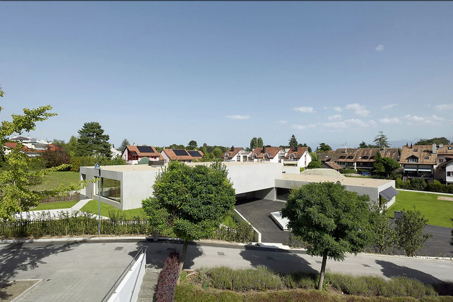 朝向不同方向的大型采光窗更加強調了建筑的自然品質,在建筑選址中,建筑師更多的考慮了視覺關系。建筑在室內外均采用了混凝土材料,使之與地形和周邊環境融為一體。