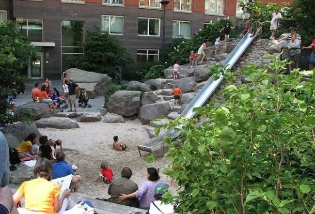 該公園的一些地方鼓勵團體互動,而其他區(qū)域就是較安靜、獨立的區(qū)域,孩子們可以單獨玩耍。在游樂場里可以增強孩子們的社交和溝通技巧,具有學習和玩耍的雙重作用。
