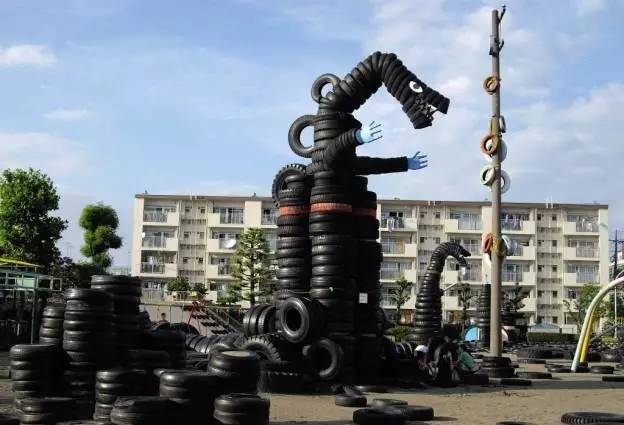 Nishi Rokugo游樂場(輪胎游樂場)的特色就是恐龍、怪物、橋、滑梯和秋千等等元素,這些元素都是采用輪胎構成,由成千上萬個汽車輪胎構成構成的游樂場具有非常特別的風格,而且在游樂場的周圍還散布著數(shù)量不一的輪胎,這些輪胎能夠供孩子和父母堆疊、滾動、跳躍和攀爬,能夠讓孩子和家長盡情地玩耍。
