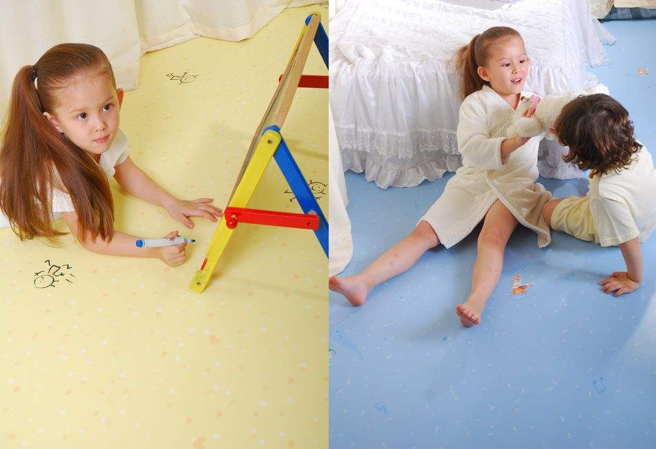幼兒園地板采用特殊的表面處理工藝,具有優良的耐污染性和易清掃性,只需簡單清掃就能保證pvc地板表面始終光潔如新。