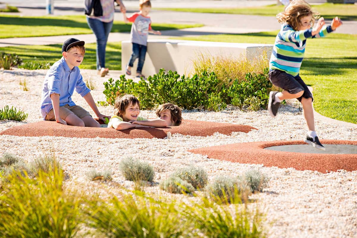 以自然為基礎的游樂元素從該區域的本土植被里獲得靈感設計。紅樹林的結構和氣根都體現在了特制、木制的攀登設施、繩索平衡和木板路。紅樹林的潮間帶環境被改造成巨大沙地中的水游樂場。該游樂場具有多種多樣的挑戰設計,迎合各個年齡、性別、文化和能力的人,不會產生隔離情況。該方法能夠讓孩子們做決定、獲取信息以及解決不同的危機。